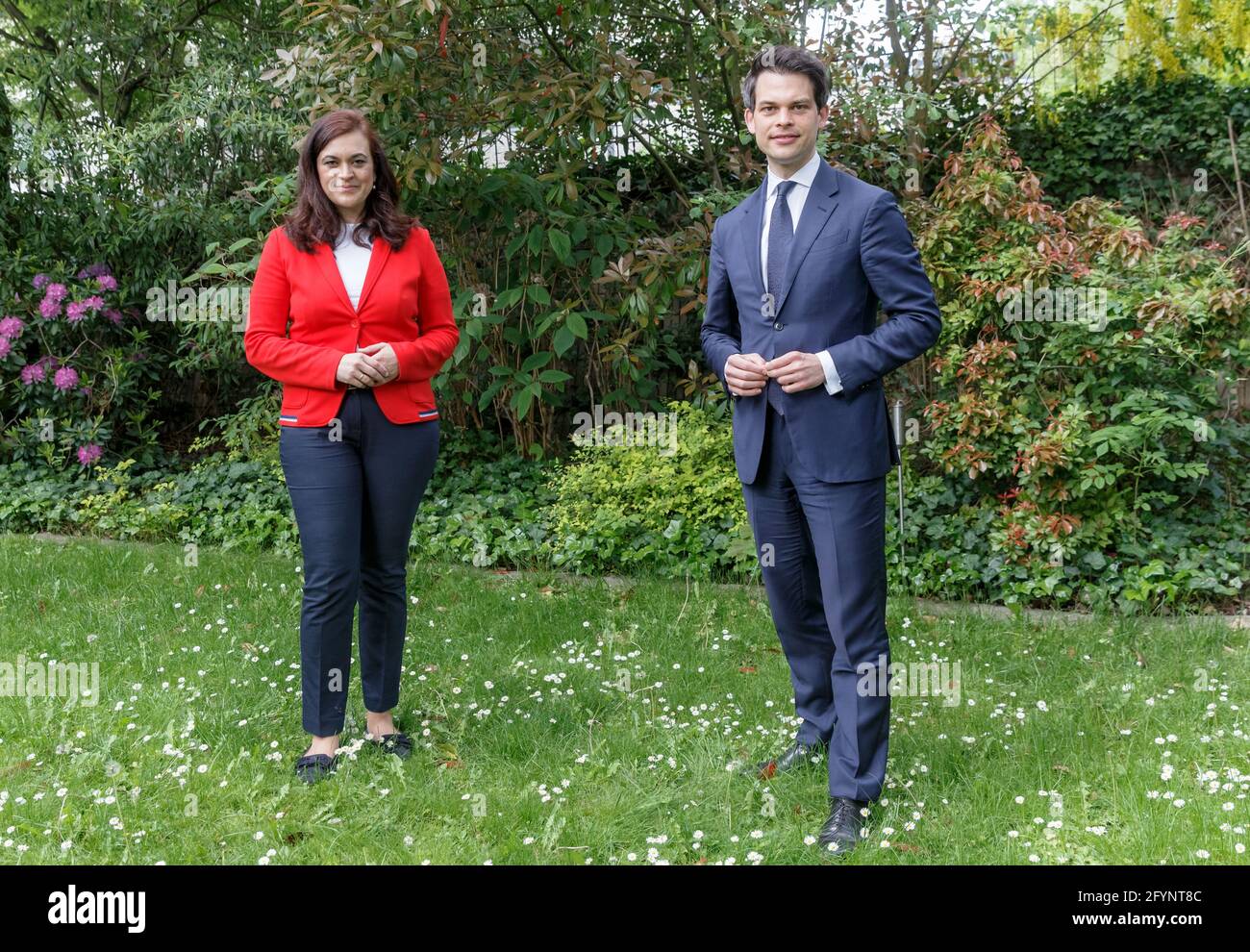 Hamburgo Alemania 29th De Mayo De 2021 Franziska Hoppermann Cdu L Y Christoph Ploss Cdu Presidente Del Estado En Hamburgo Se Encuentran En El Jardin De La Sede Del Partido Cdu Despues